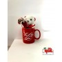 Tazza stampata colore rosso con scritto "I Love You" con piccolo orsetto di peluche bianco.